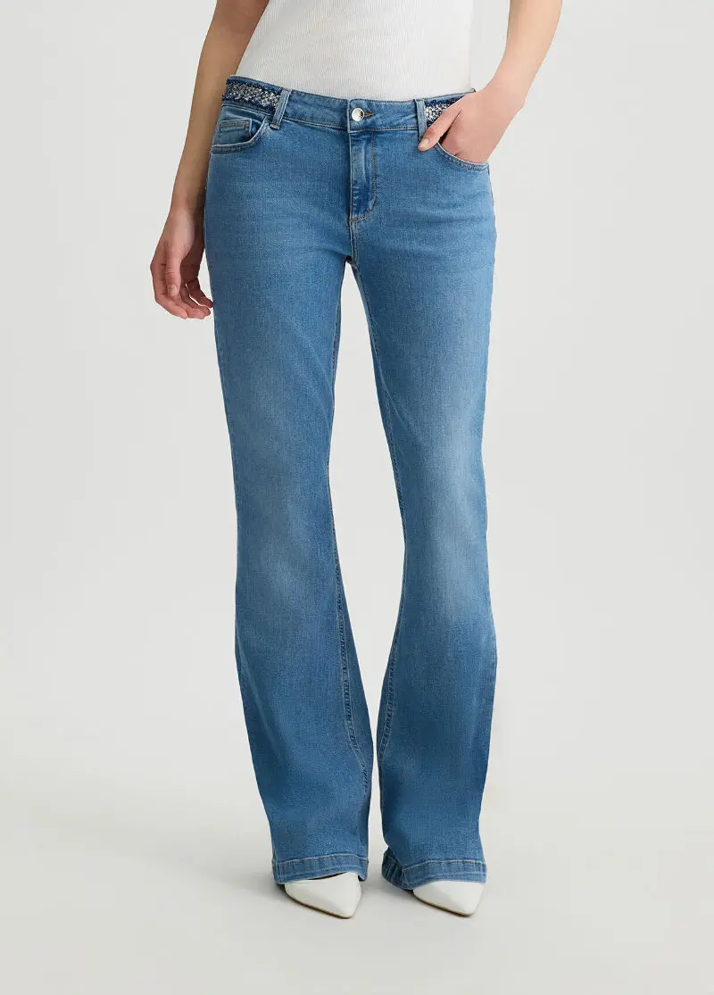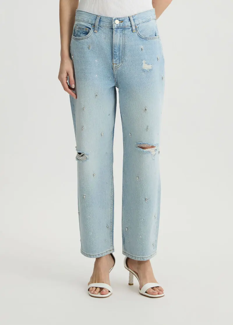 Джинсы прямого кроя со стразами