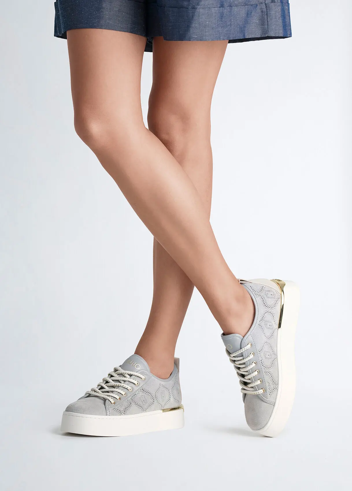 Кеды с верхом из замши Логотип, нанесенный перфорацией На заднике: глянцевая вставка Логотип на язычке Металлическая накладка с логотипом Круглые шнурки с отделкой люрексом Плоская резиновая подошва Высота подошвы: 4 см