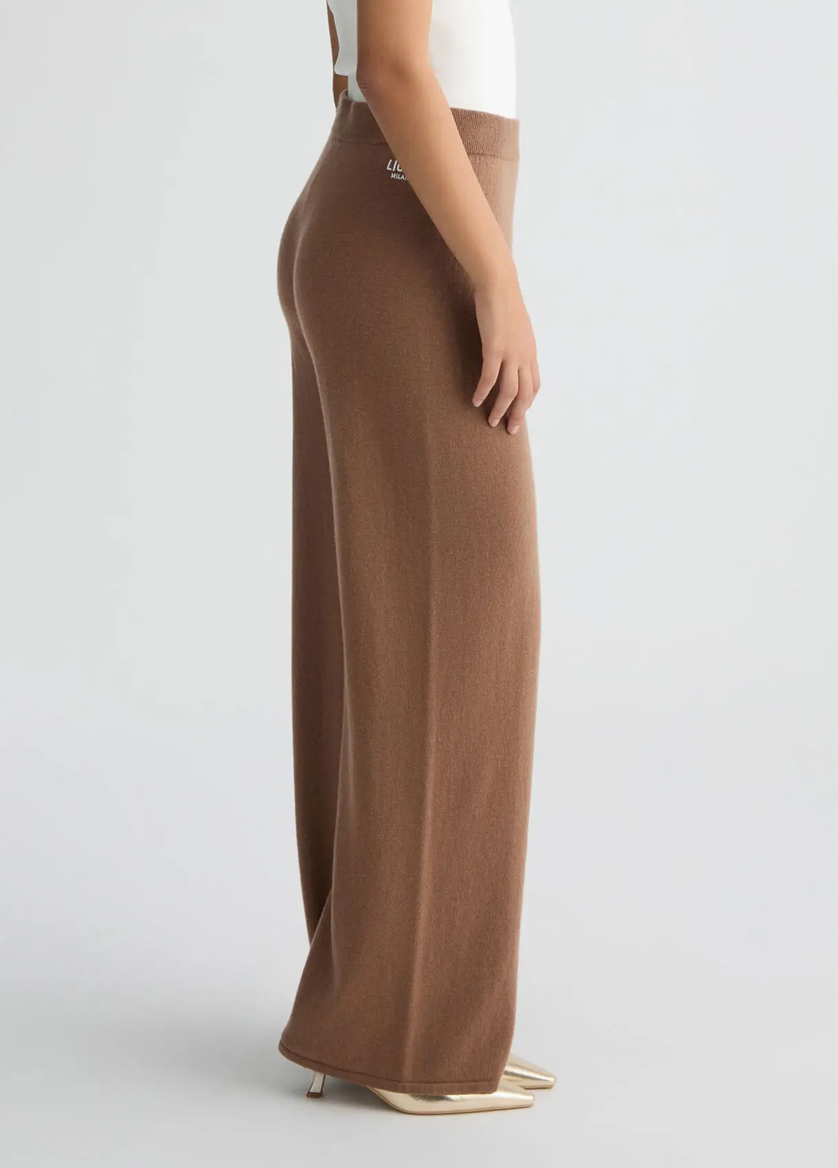 Длинные коричневые брюки из смесового кашемирового трикотажа Широкий удобный крой Эластичный пояс на талии Сзади: лаконичный силуэт без видимых швов