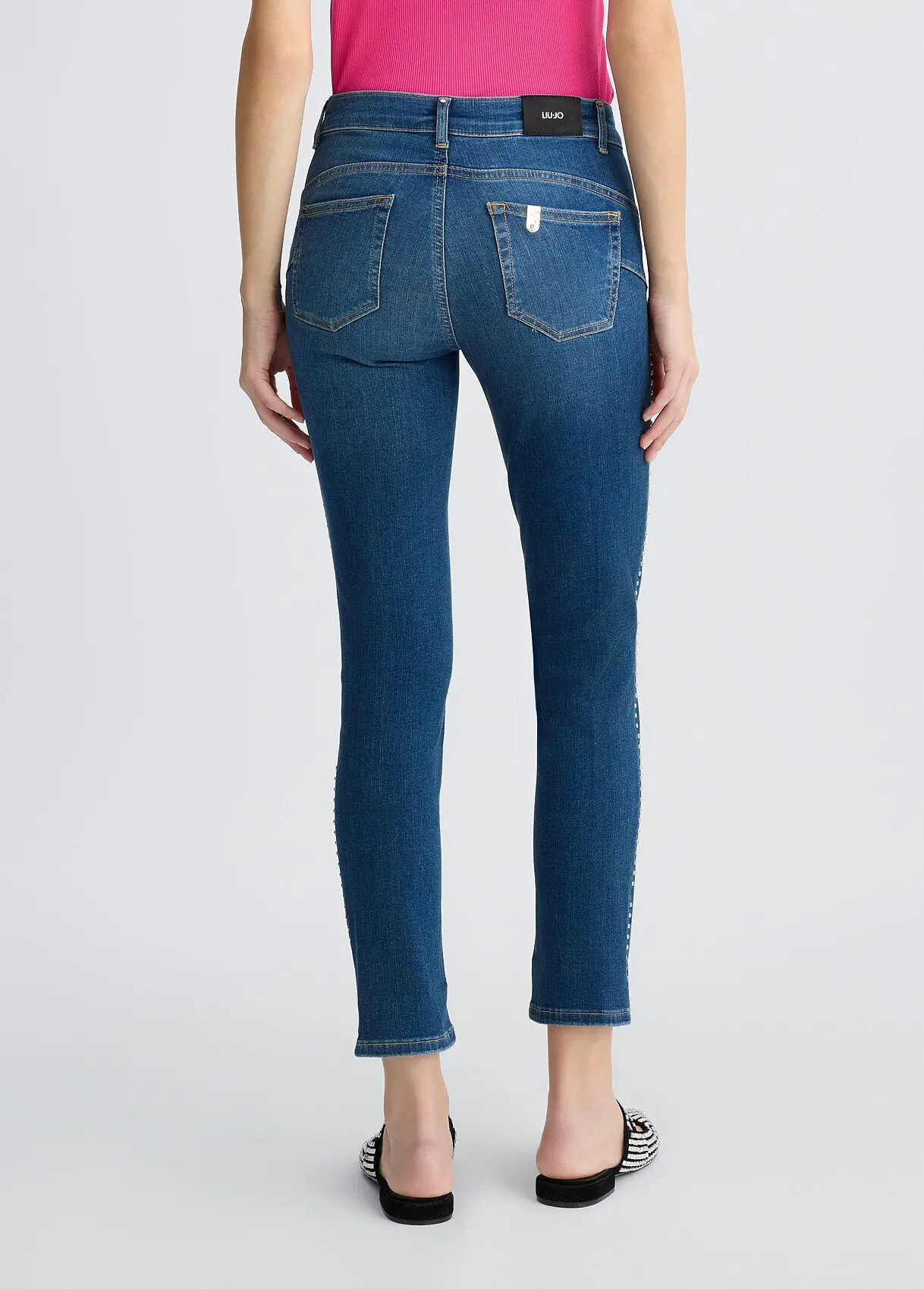 Джинсы из хлопкового денима стретч Темный оттенок Вытачки Bottom Up Модель с пятью карманами Средняя линия талии Крой скинни Отделка заклепками Лейбл с логотипом Длина брючин: 71 см Ширина по низу: 16 см