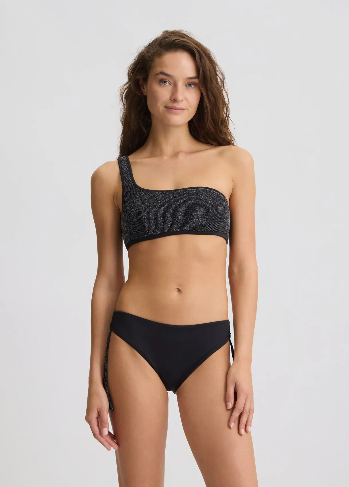 Купальник из ткани стретч с люрексом® Топ на одно плечо Плавки с бантиками по бокам Сзади: металлические буквы LJ